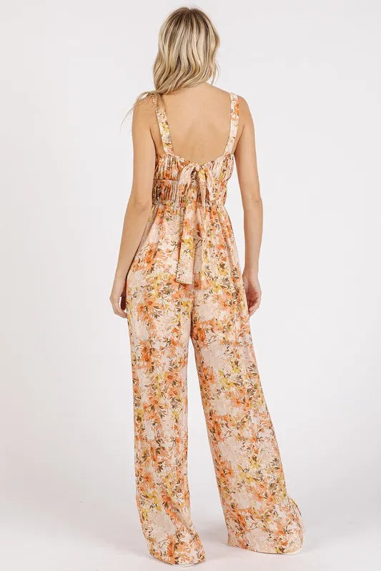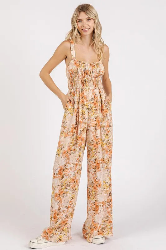 Mittoshop Flower Print Gathered Bust Sleeveless Jumpsuit