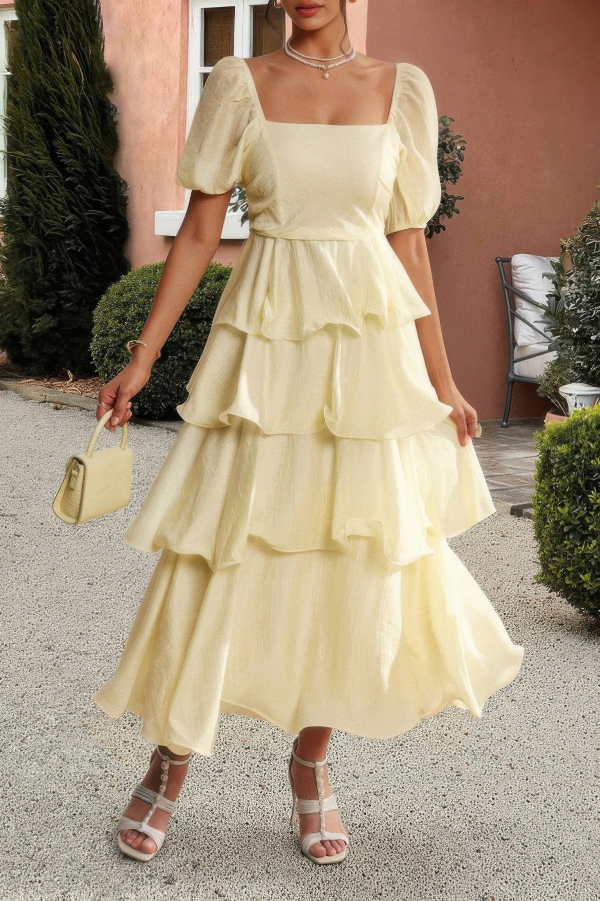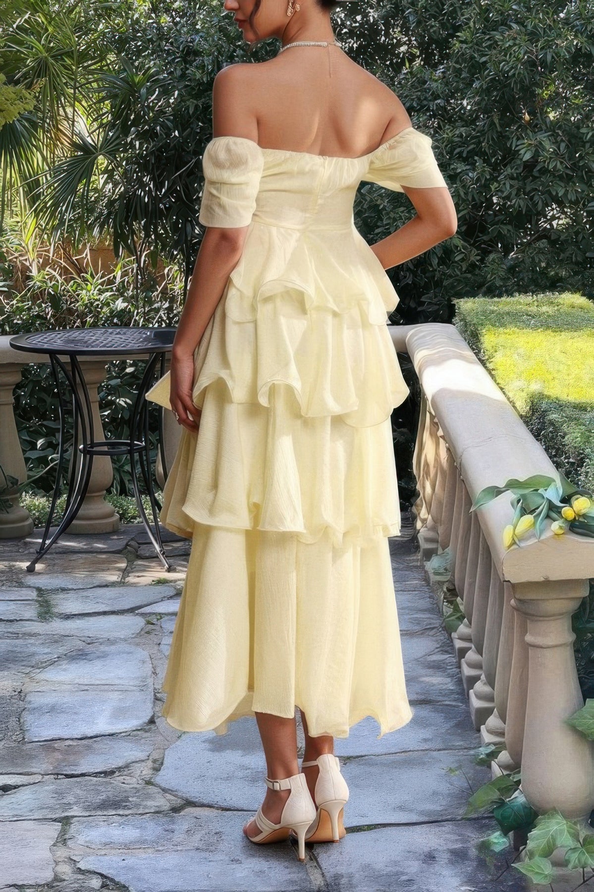 Feminine and effortlessly chic, this off-shoulder puff short sleeves tiered dress is the perfect choice for warm-weather days and casual outings. Made from a soft and breathable blend of 85% lyocell and 15% polyamide, this dress offers lightweight comfort with a graceful drape. The off-shoulder design paired with charming puff sleeves creates a romantic silhouette, while the tiered skirt adds playful movement and flow. Ideal for vacations, weekend brunches, or outdoor events, this dress brings a fresh, stylish touch to any casual occasion.