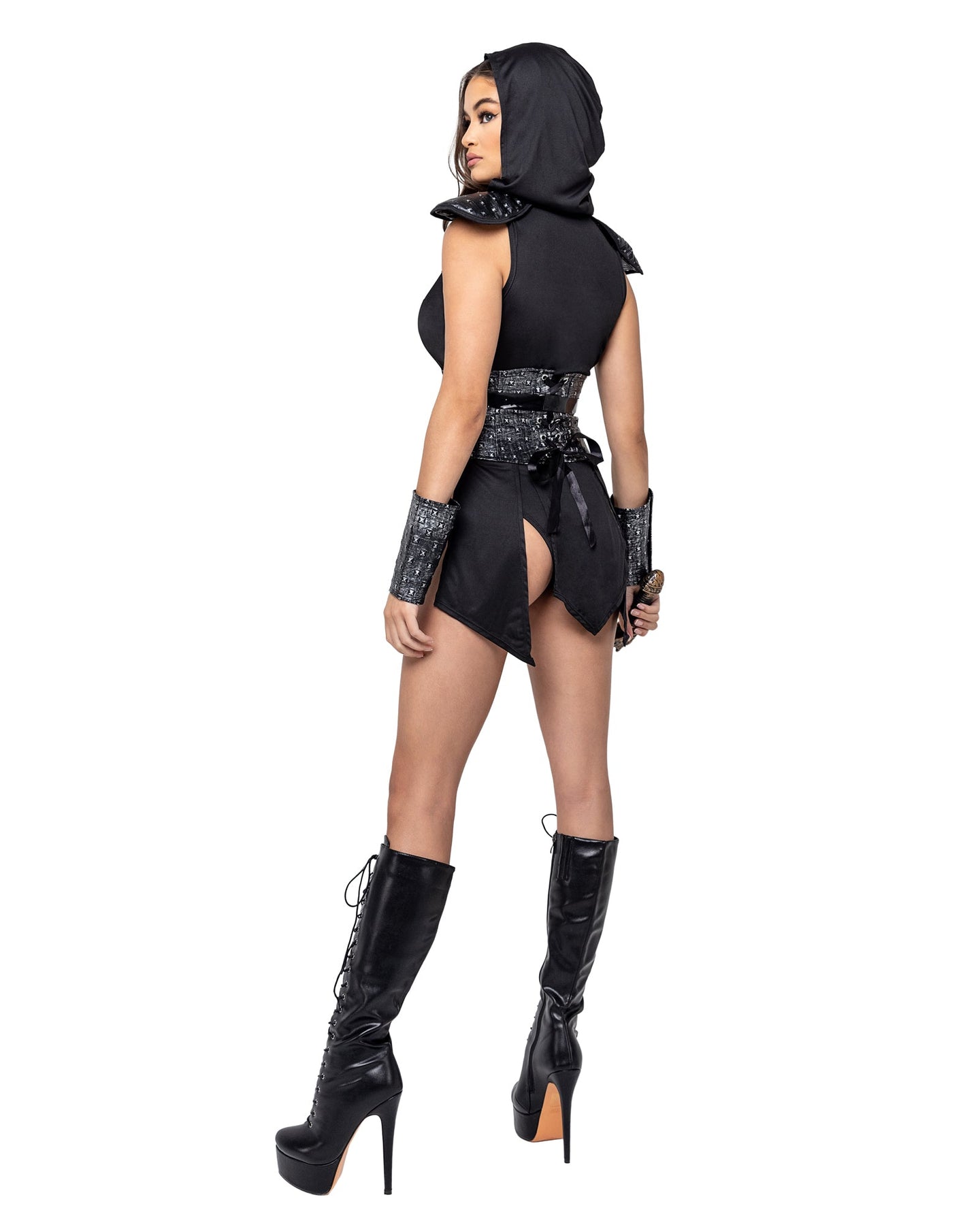 Includes Hooded Dress with Attached Studded Harness, Shorts, and Corset