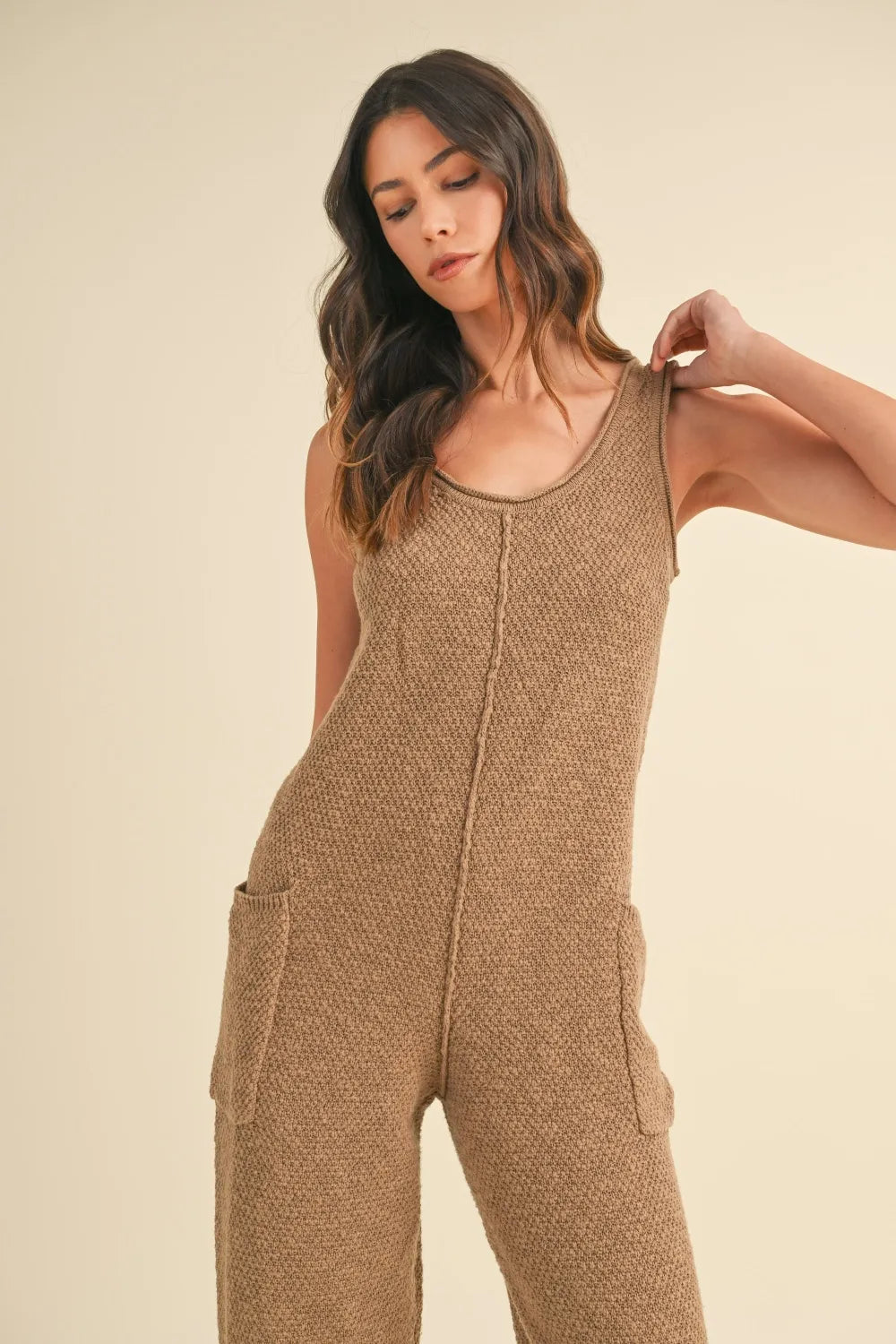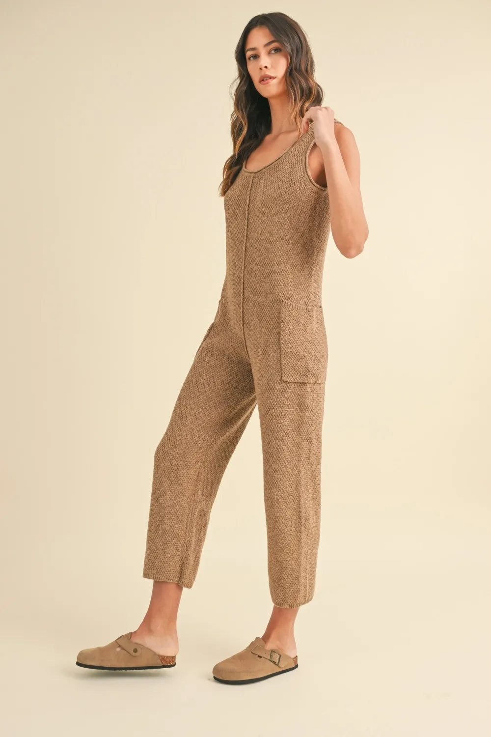 This sleeveless knit crop jumpsuit is crafted from a textured sweater knit material, offering both style and comfort. The side pocket detail adds functionality and a touch of modern flair. Perfect for a casual day out or dressed up for a night out, this jumpsuit is versatile and chic. Pair it with your favorite accessories and shoes for a complete look. Elevate your wardrobe with this trendy and practical jumpsuit that combines fashion and functionality.