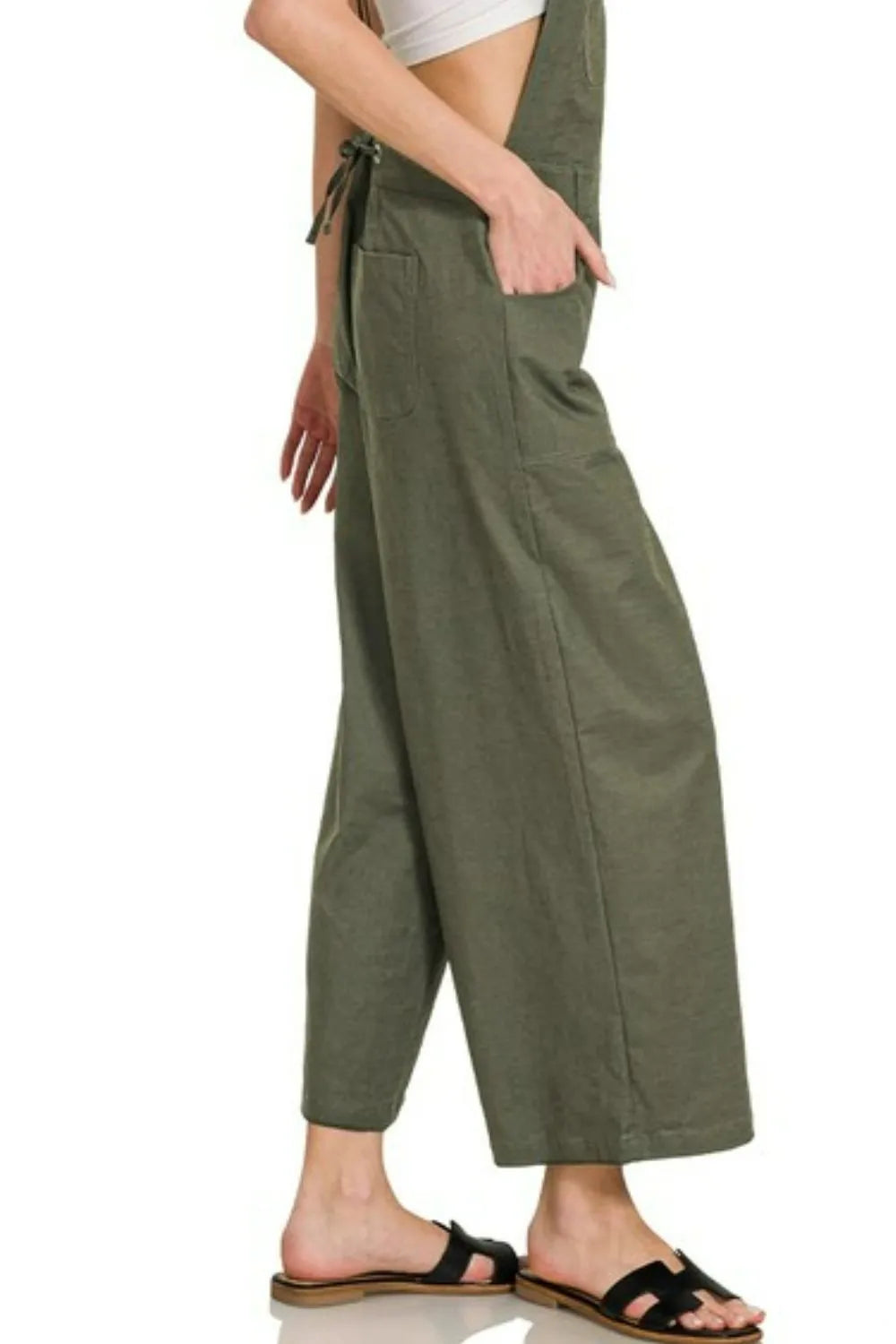 Zenana Woven Spaghetti Strap Overalls