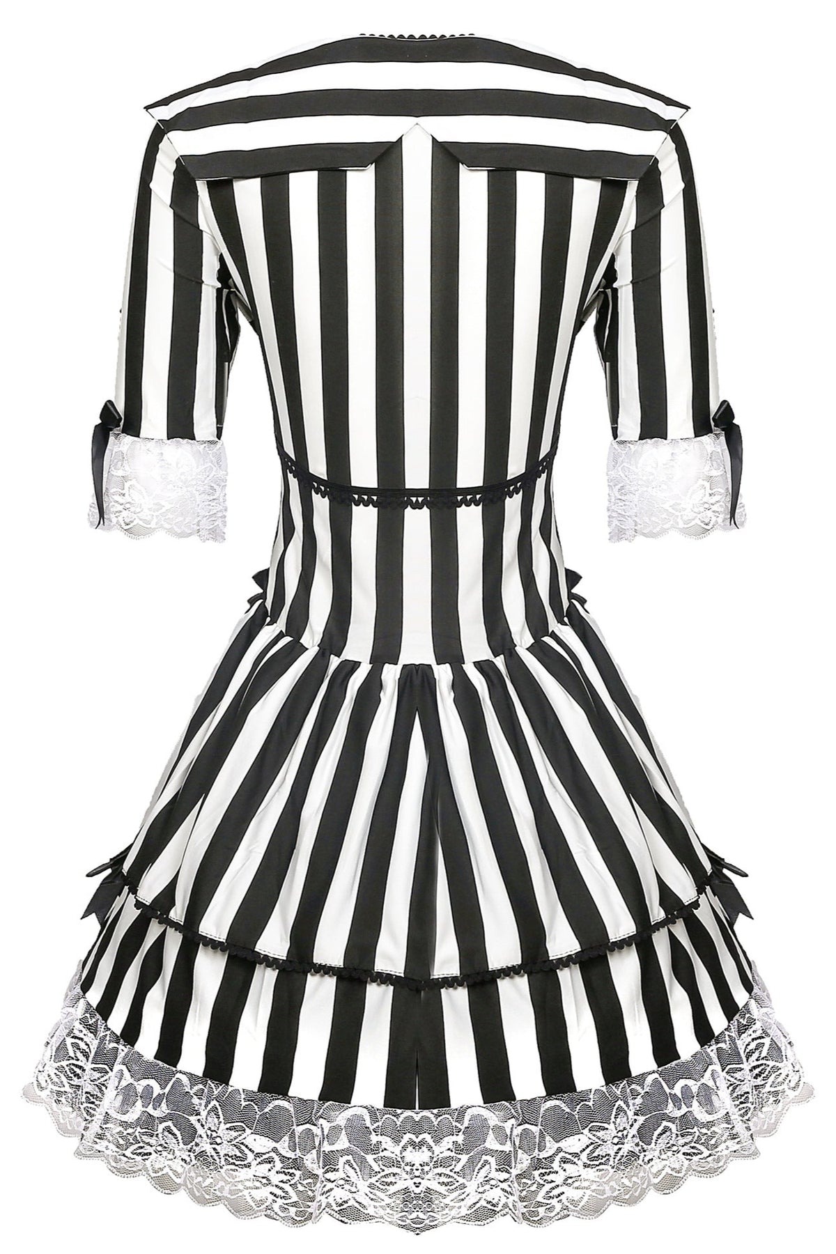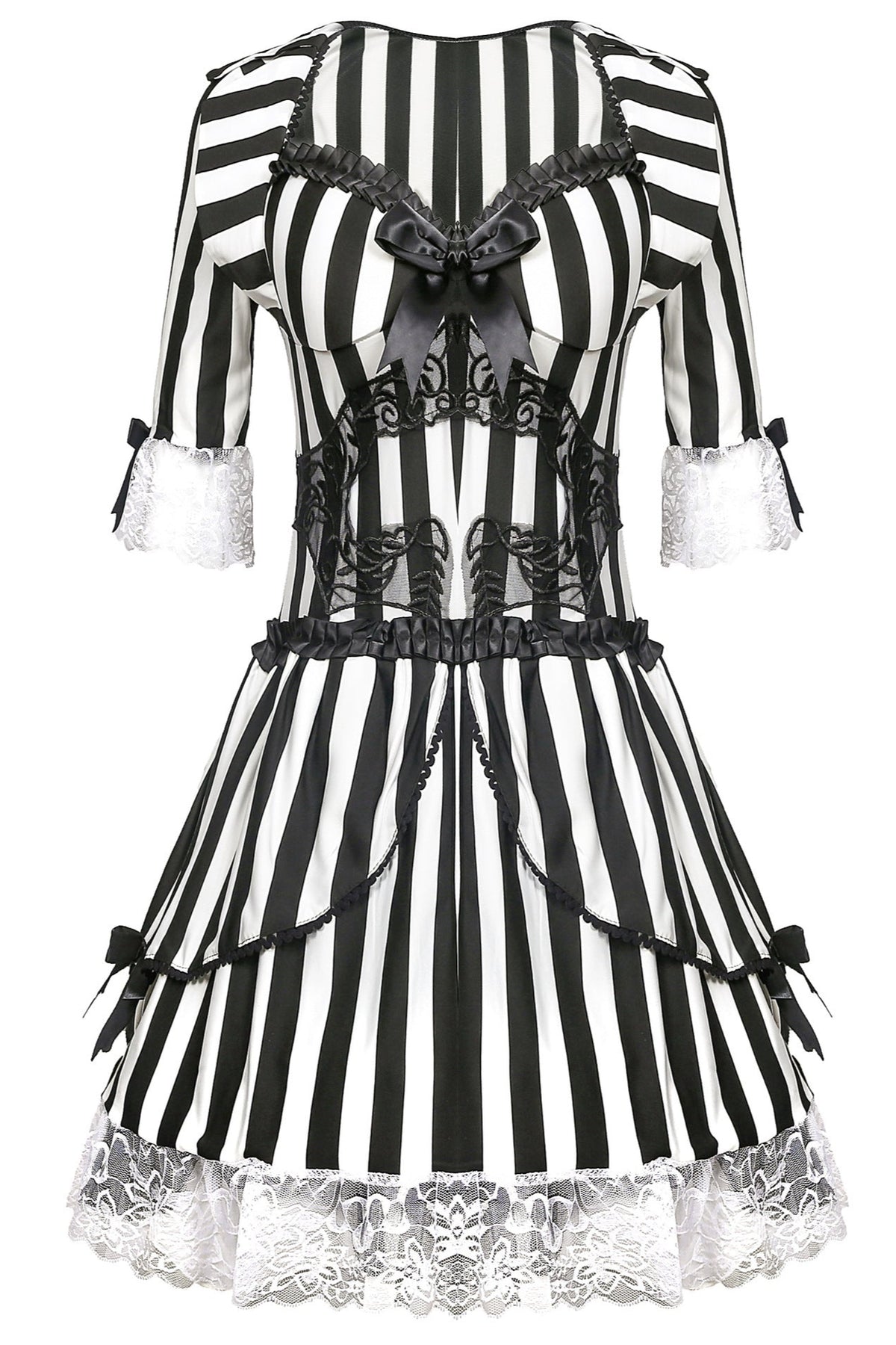 Black White Stripes Lace Sexy Movie Character Dress Costume