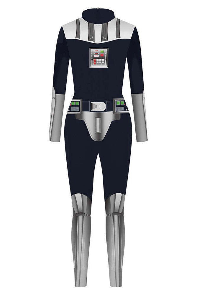 Black Dark Vador Sexy Stretchy Fitted Jumpsuit Full Length Costume