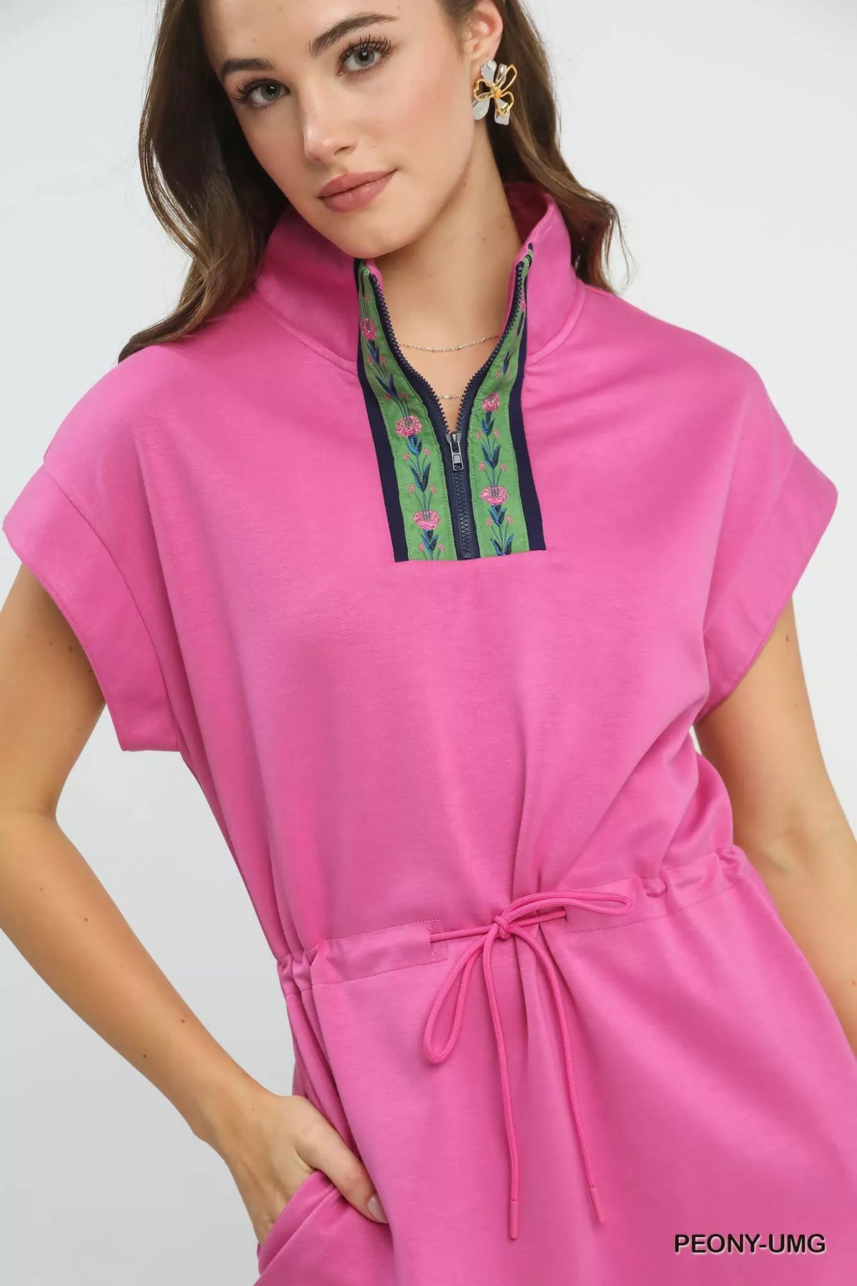 Umgee Dolman Sleeve Zip Detail Dress