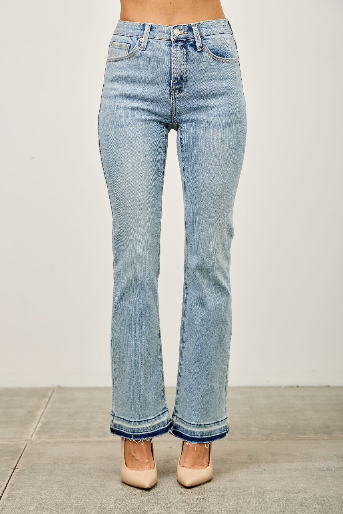 Mid-rise fit with flared leg