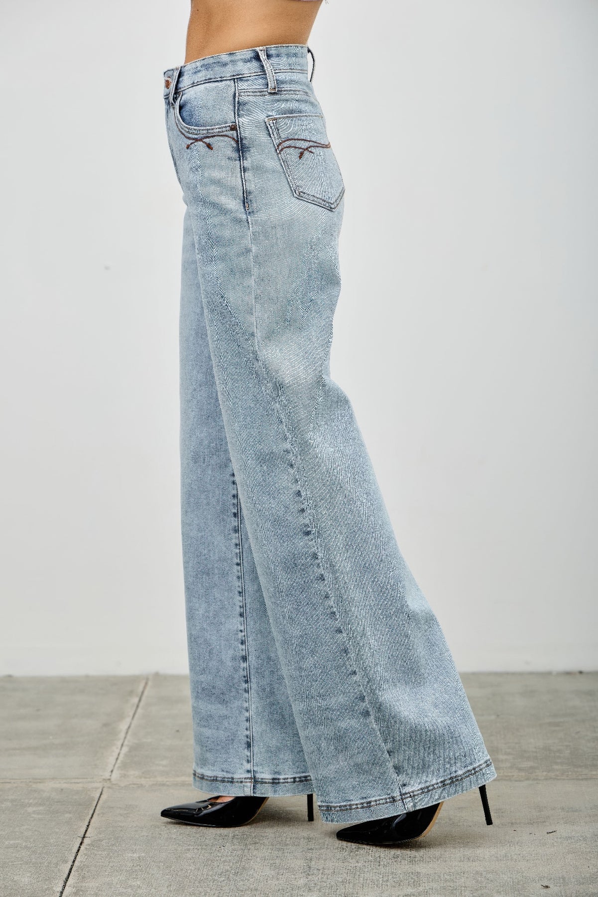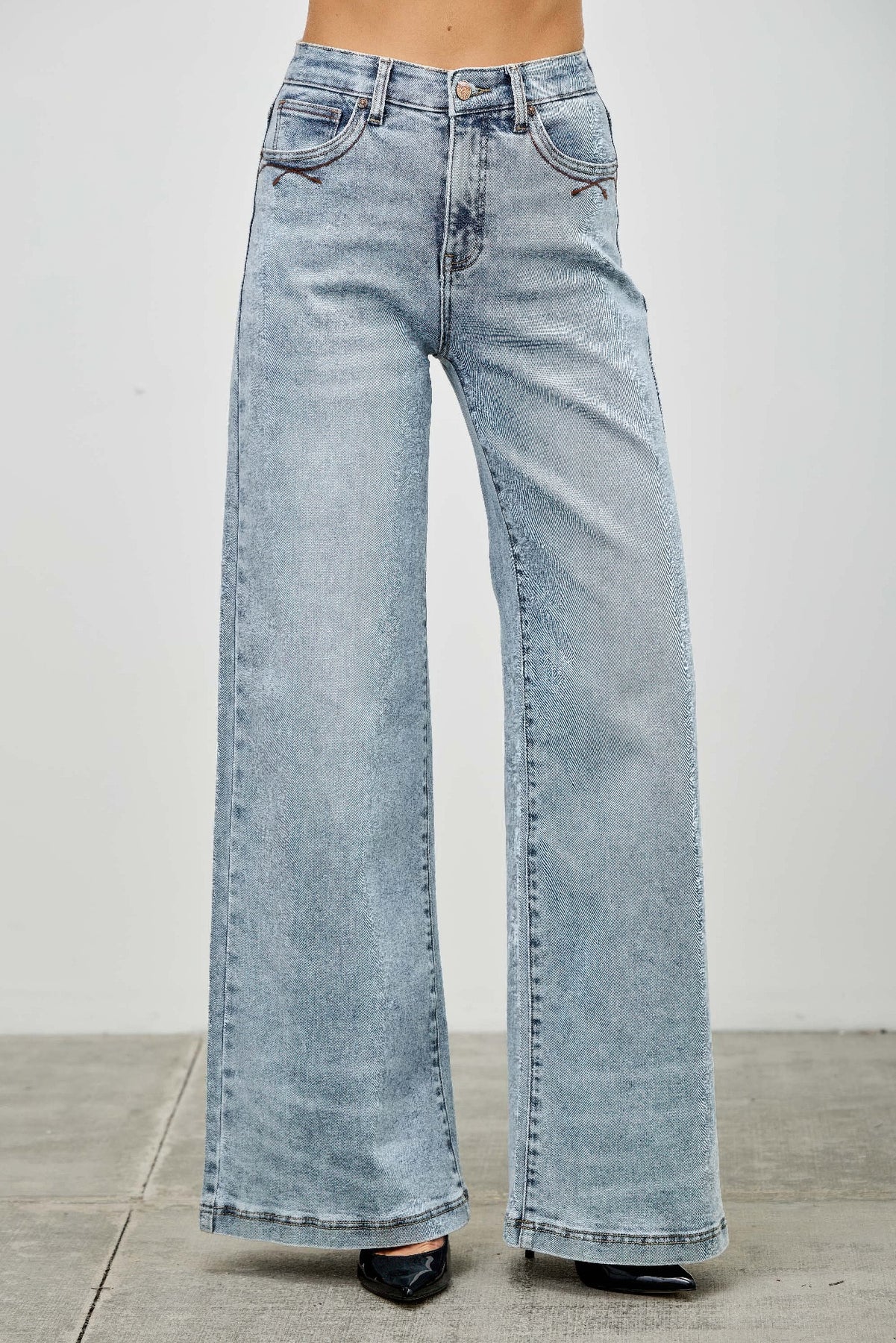 Elevate your everyday denim with these high rise wide leg jeans, designed to offer a flattering silhouette with all-day comfort. Crafted from a soft, stretch-infused fabric, they contour through the waist and hips before flowing into a wide leg for a polished yet relaxed fit. The high-rise waist enhances your shape, while classic five-pocket styling and a zipper fly complete the timeless look. Perfect for pairing with everything from structured blouses to casual tees, these jeans are a modern wardrobe staple.