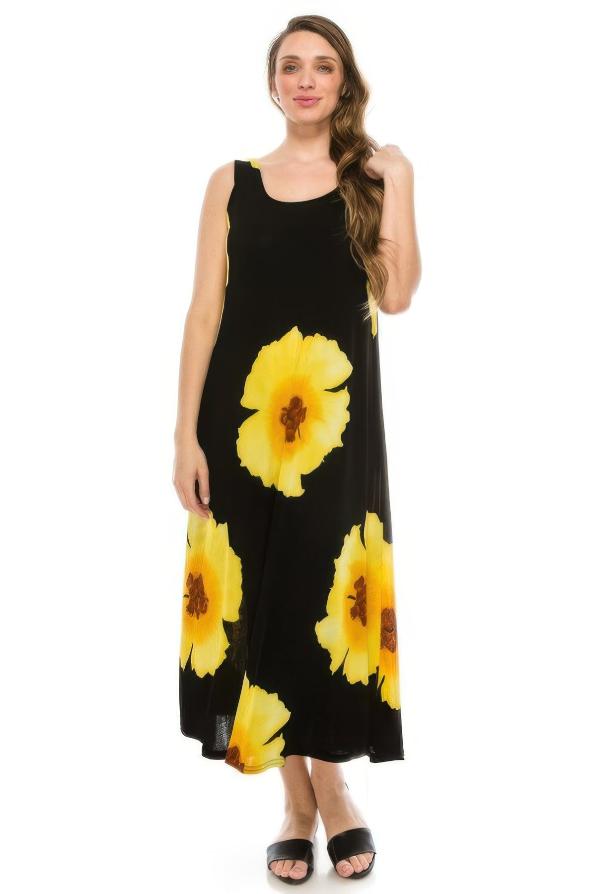 Soft, flowing, and full of personality, this sleeveless long dress is the perfect blend of comfort and casual elegance. Its round neckline and full-length silhouette create a graceful shape that’s ideal for a variety of settings. Available in a range of prints, it offers endless styling options from season to season. The 50-inch length provides generous coverage while maintaining a lightweight, breathable feel. Whether worn on vacation, to brunch, or simply as an everyday favorite, this dress adapts easily to your lifestyle. The stretchy fabric offers movement without sacrificing shape, keeping you comfortable from morning to night. Made in the USA, it’s a trusted piece that delivers wear-after-wear reliability.
