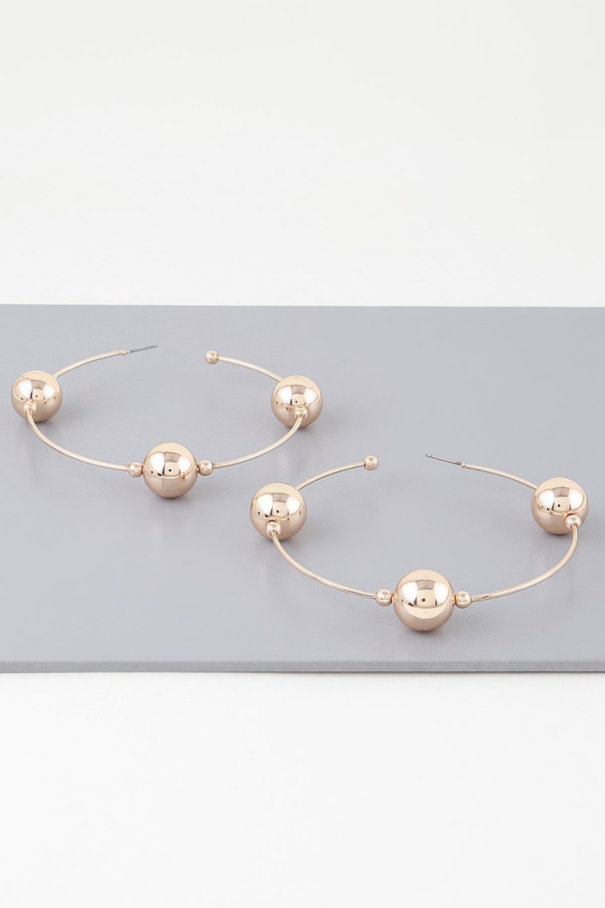 Add a statement piece to your jewelry collection with the Triple Shiny Bead Hoop Earrings. Order now and shine bright wherever you go!