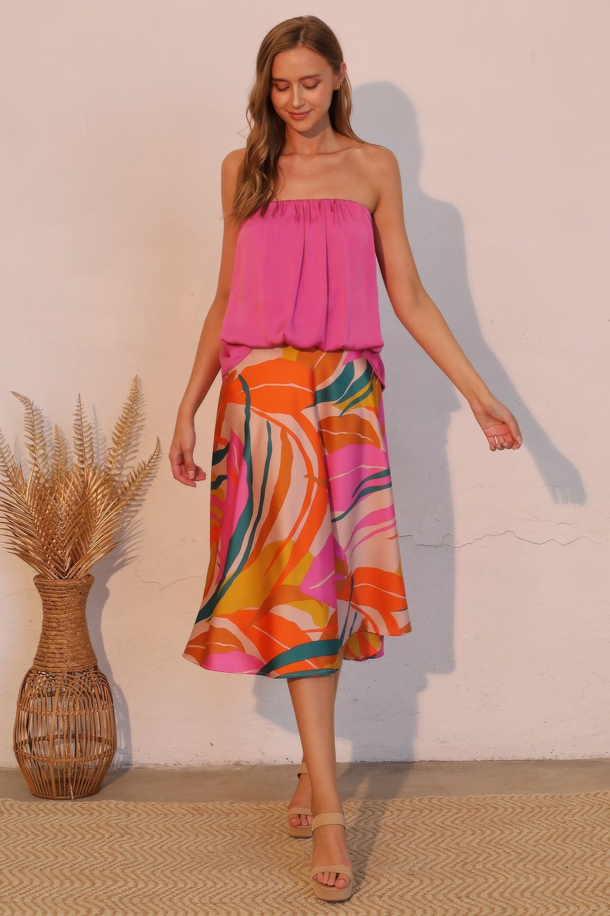 Isla Tropical Satin Midi Swing Skirt