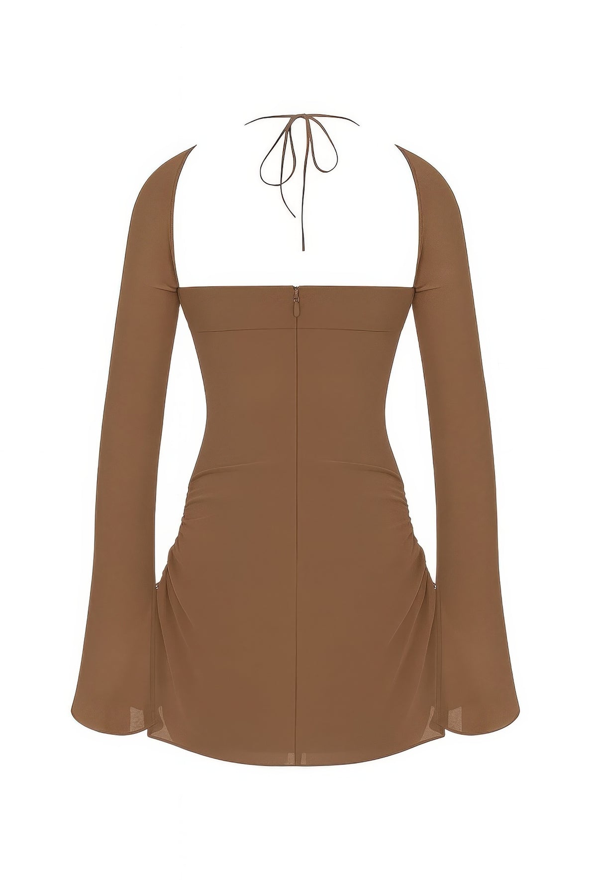 Sleek and sultry, this peek hole mini dress is designed to make an unforgettable impression. Featuring a halter neckline and long sleeves with flared ends, it exudes sophistication with a daring twist. The side peek holes and side slits add just the right amount of allure, while the non-stretch fabric maintains a structured, flattering silhouette. Perfect for evening events or a night out, this dress combines elegance and bold confidence in one stunning piece.