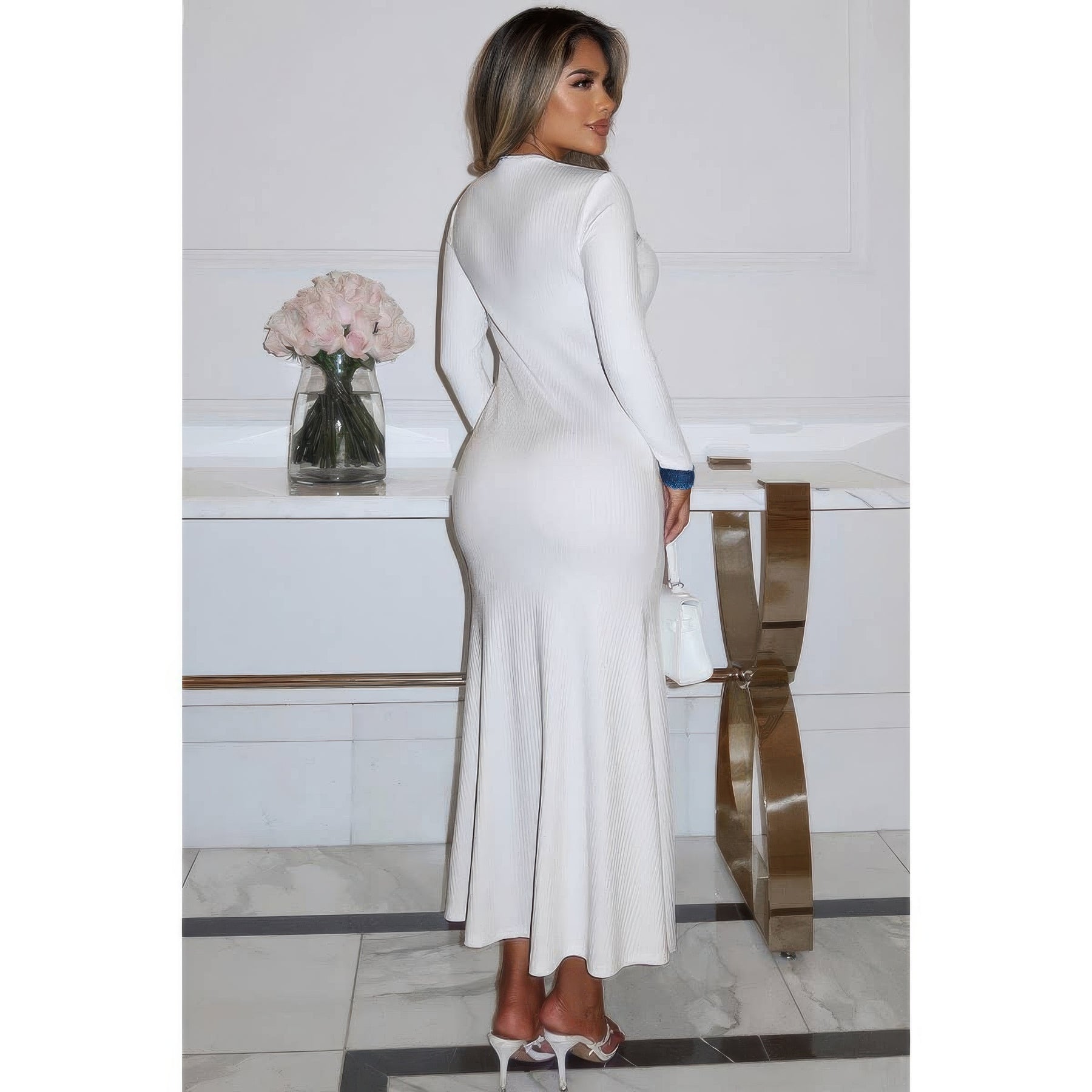 Elegant and refined, the Contrast Trim Round Neck Long Sleeve Fit Dress is a modern classic. Made from a comfortable polyester-spandex blend, it offers a smooth, figure-flattering fit. The contrast trim highlights the neckline and cuffs, adding a touch of sophistication to its minimalist design. Perfect for workdays, brunches, or evening occasions. This dress exudes understated confidence and timeless appeal.